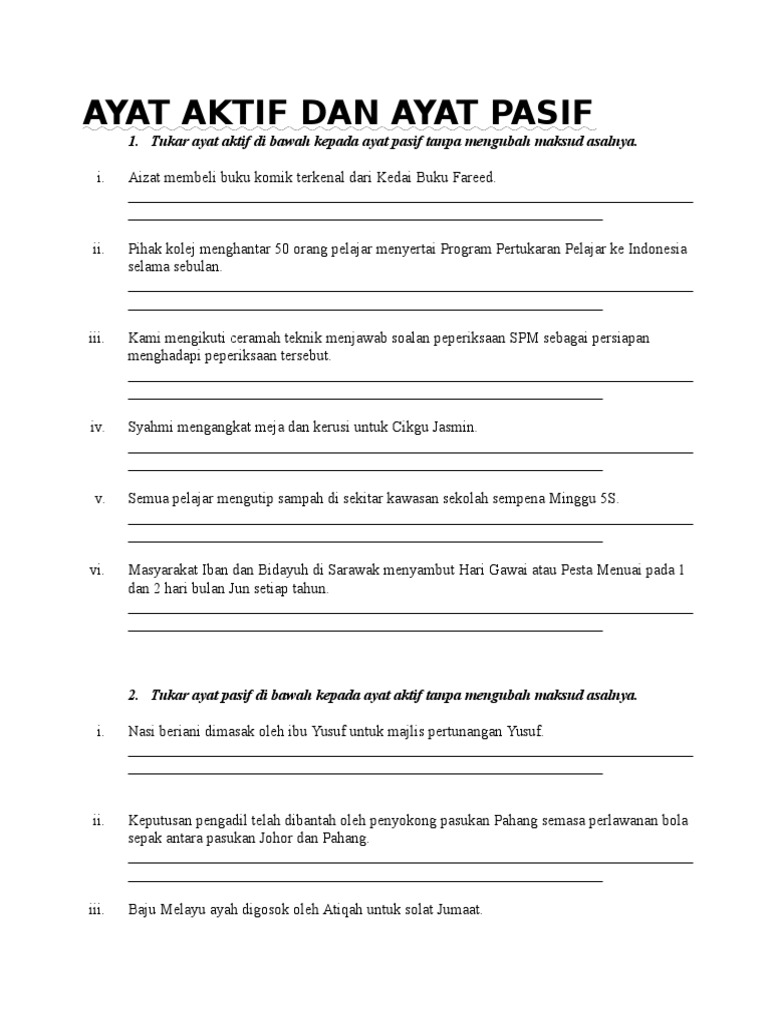 Latihan Ayat Aktif Dan Ayat Pasif Pdf